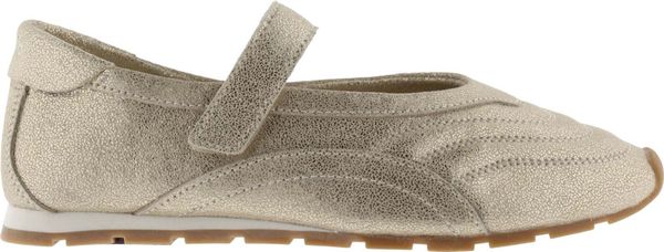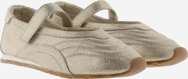 Elegante Damen-Ballerinas aus metallischem Leder mit Klettverschluss und rutschfester Gummisohle für optimalen Halt.