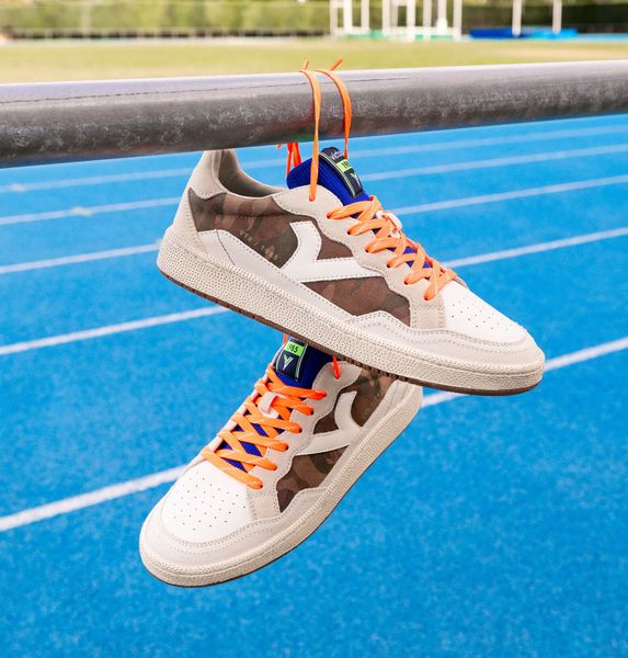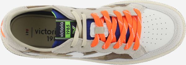 Entdecken Sie die perfekte Kombination aus Stil und Komfort mit den unisex Sportschuhen "Smash - Neon Camo" von Victoria. Diese Sneaker aus hochwertigem Leder mit Polyurethan-Details sind ein echter Hingucker. Das seitliche Retro-Victoria-V in Weiß hebt sich eindrucksvoll vom camouflage-gemusterten Hintergrund ab und verleiht dem Schuh einen einzigartigen Look.