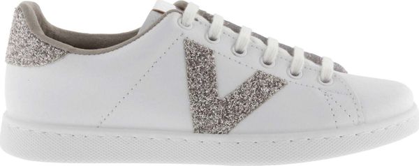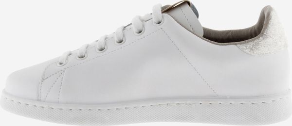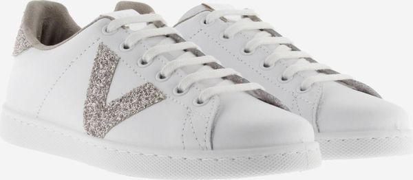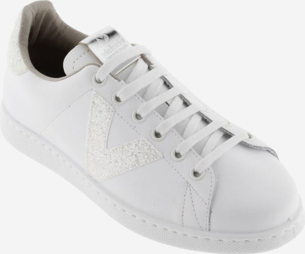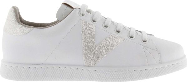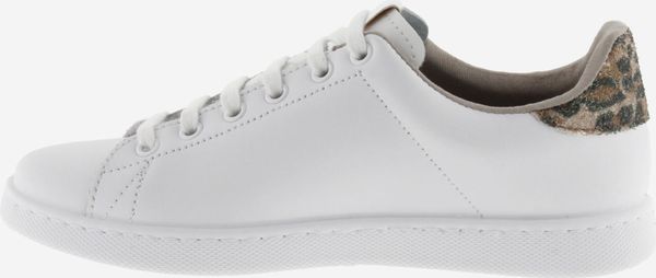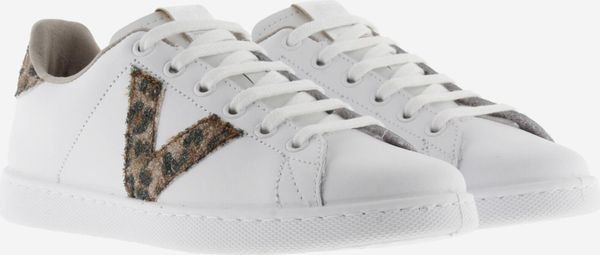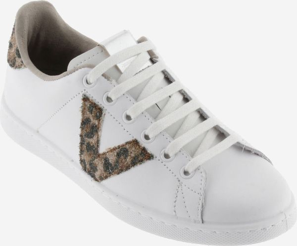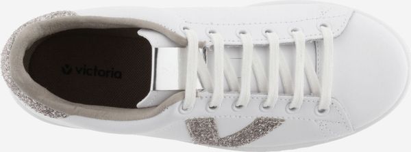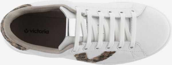 Die stilvollen weißen Tennis-Sneaker für Damen von Victoria vereinen Eleganz und Umweltbewusstsein. Diese in Spanien aus hochwertigem Leder gefertigten Schuhe zeichnen sich durch ein seitliches Victoria-"V" und ein auffälliges Fersenteil aus Glitter und Animal Print aus. Ein metallisches Label auf der Zunge verleiht dem Design einen zusätzlichen Hauch von Raffinesse.