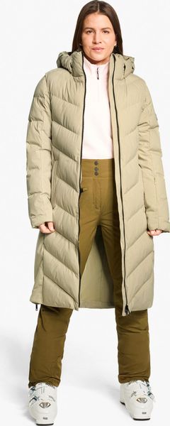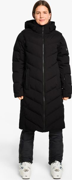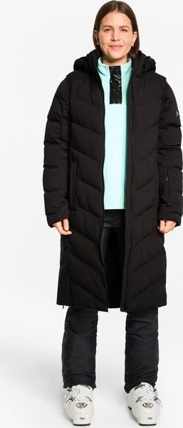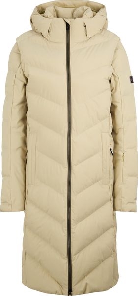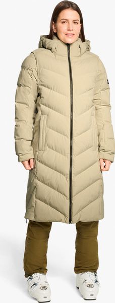 Für Skifahrerinnen bietet der Mantel eine spezielle Skipasstasche am Ärmel, was ihn zum perfekten Begleiter auf und abseits der Piste macht. Die Innentaschen aus Meshmaterial sind ideal für die sichere Aufbewahrung von Ski- und Sonnenbrillen, während eine separate Smartphone-Tasche zusätzlichen Komfort bietet. Die recycelte Wattierung comfortemp® von Freudenberg sorgt zudem für hervorragende Thermo-Isolierung und ist pflegeleicht.